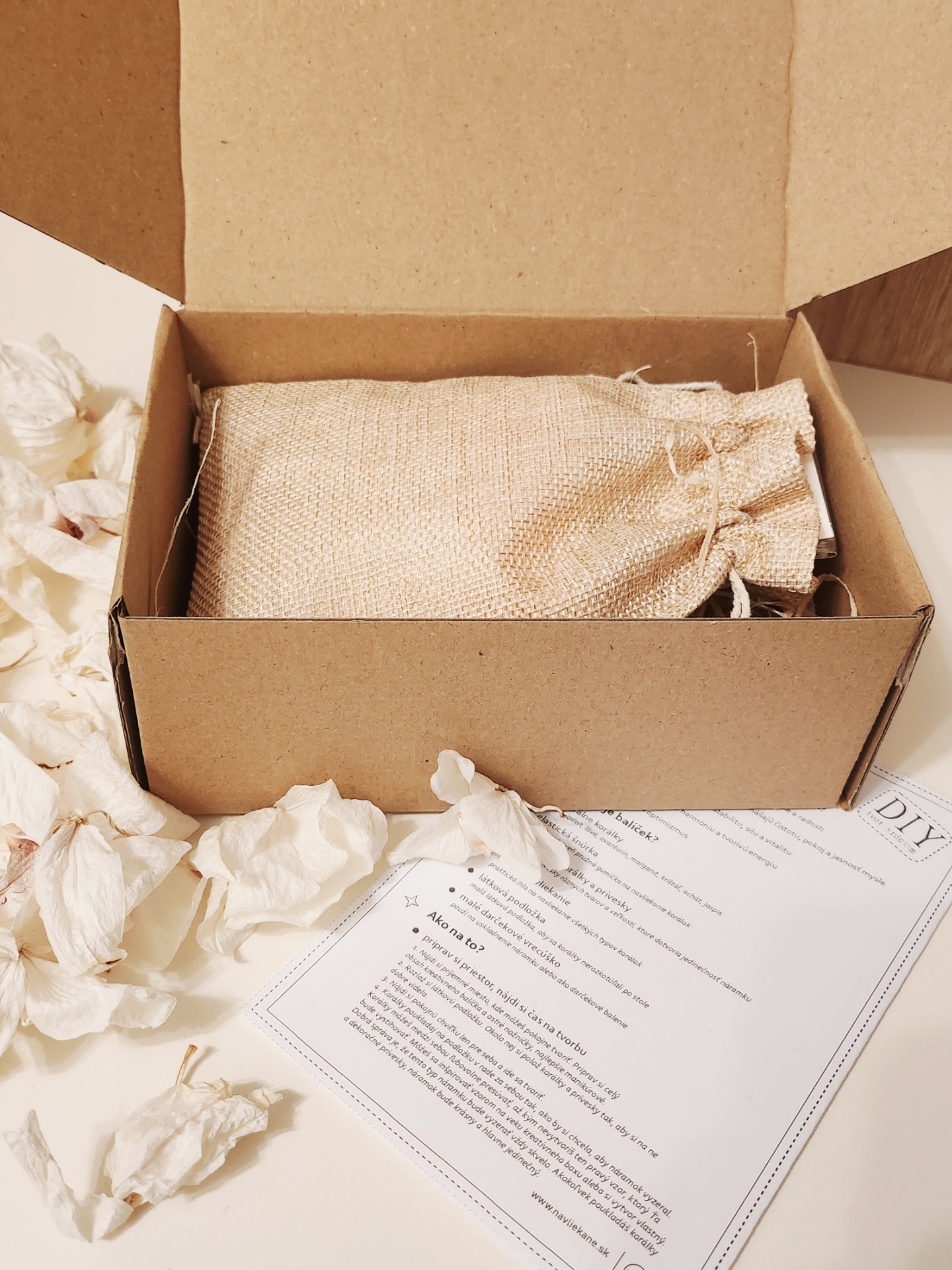 Všetky komponenty sú zabalené v jutovom vrecku.