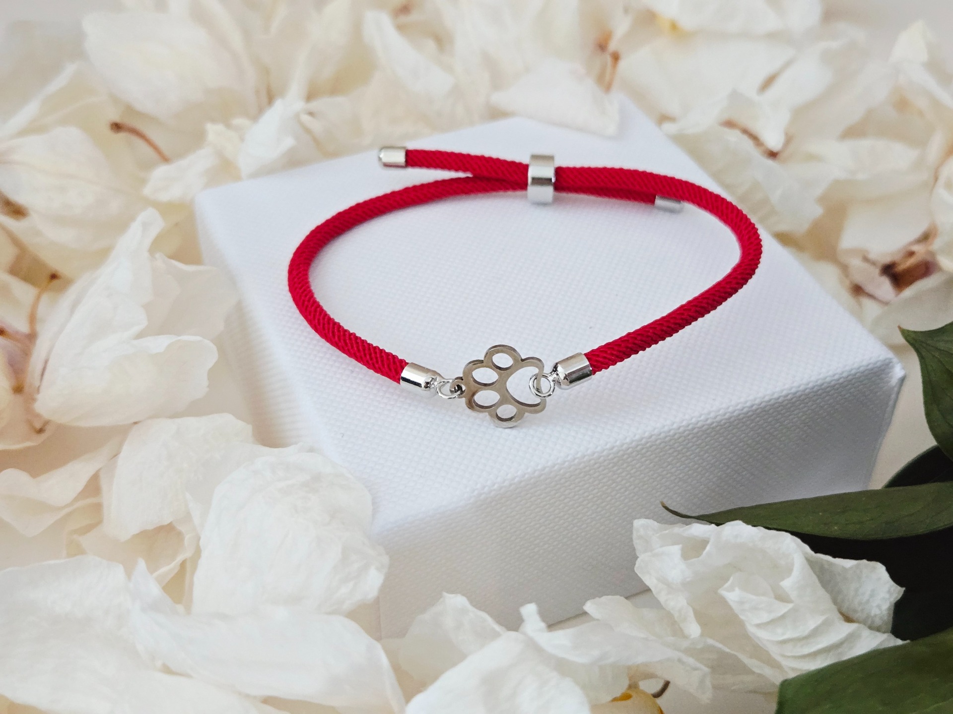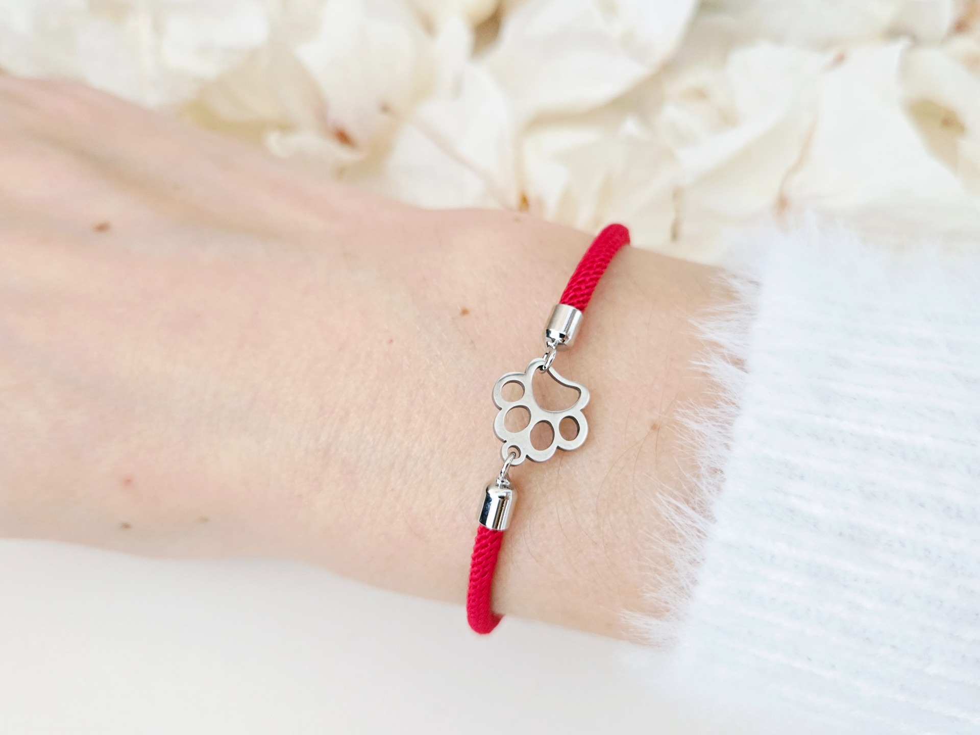 Materiál: náramok z nylonovej stáčanej šnúrky, medzikus v tvare striebornej labky