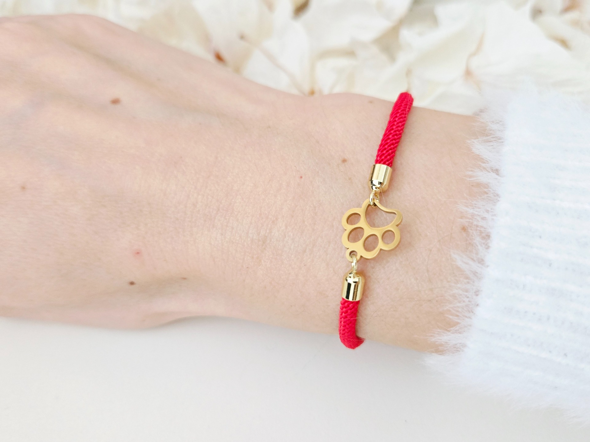 Materiál: náramok z nylonovej stáčanej šnúrky, medzikus v tvare zlatej labky