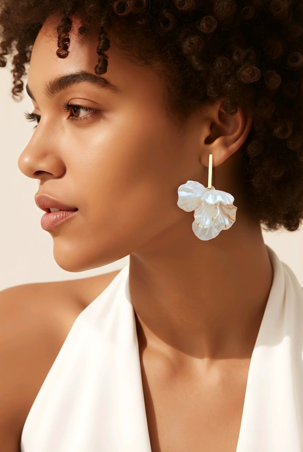 Materiál: akrylové korálky v tvare mešlí, chirurgická oceľ v zlatej farbe, náušnicové puzetové zapínanie
